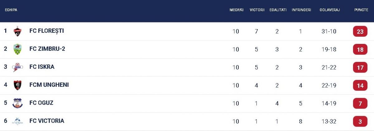 FC Victoria – FC Oguz 2-2 (Ion Pavlov 4, Alexandru Munteanu 58 / Daniil Hagiu 7, Adrian Mîrza 44)