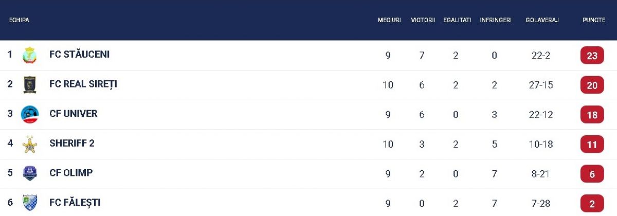 Clasamentul la zi
