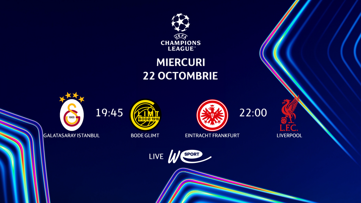 Liga Campionilor revine pe micile ecrane. Galatasaray - Bode Glimt și Eintracht Frankfurt - Liverpool în direct la WE SPORT TV