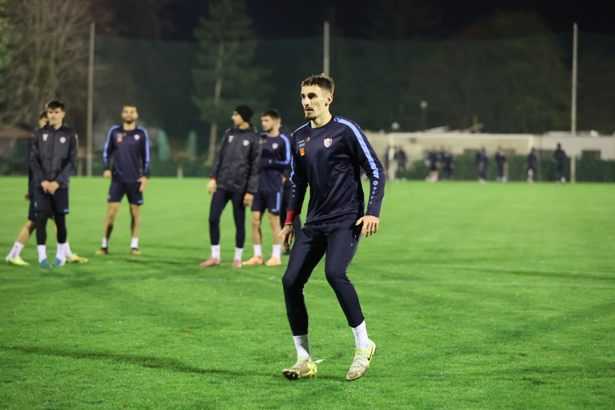 Naționala Moldovei a efectuat ultimul antrenament înaintea meciului din cadrul preliminariilor Campionatului Mondial 2026 cu selecționata Italiei. Vă prezentăm în galerie imagini de la sesiunea oficială desfășurată în seara zilei de 12 noiembrie la Centrul de Pregătire a Selecționatelor Naționale de la Vadul lui Vodă.