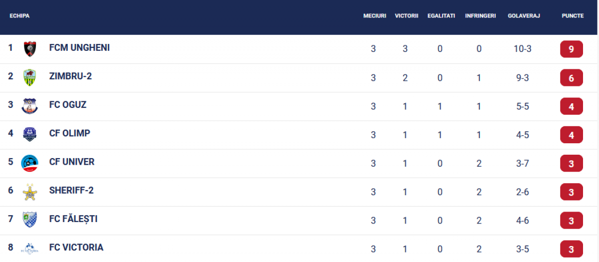 Clasamentul la zi