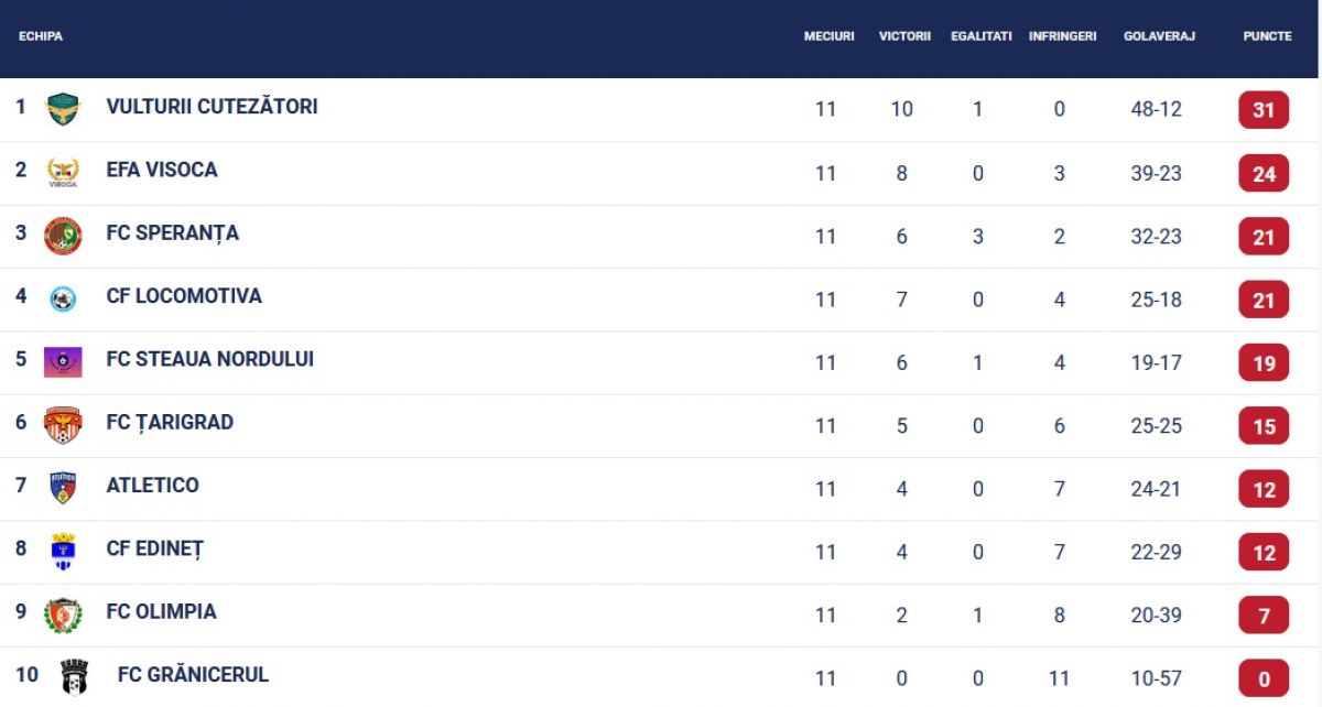 Clasamentul la zi