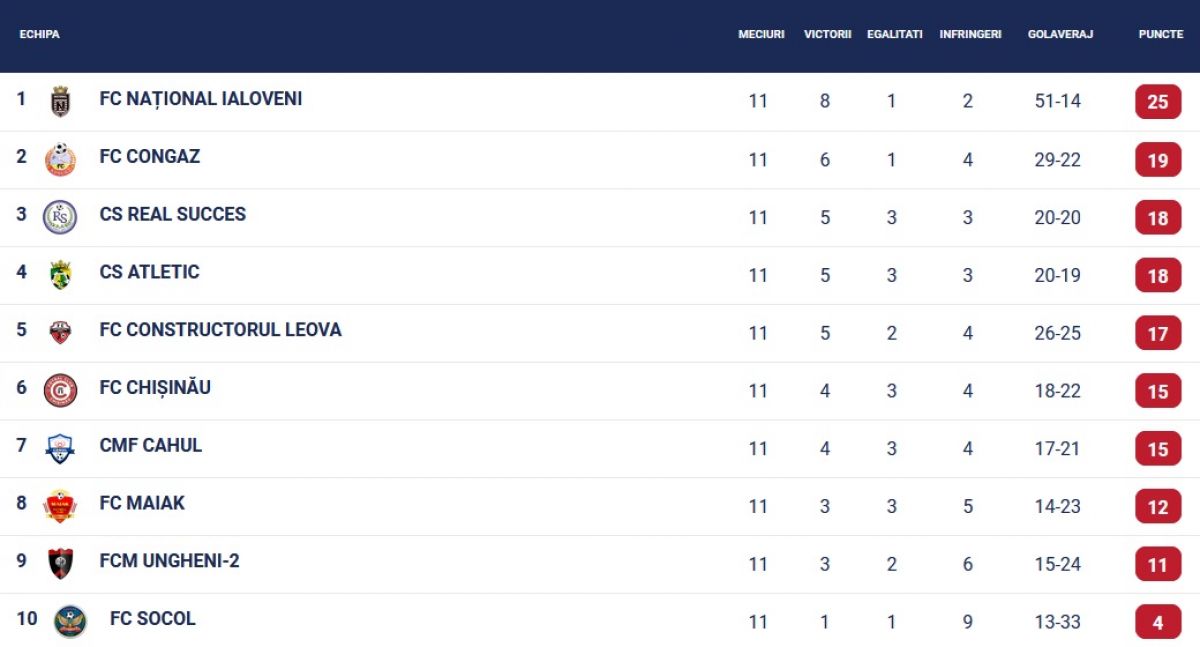 CS Real Succes – FC Național Ialoveni 1-4 (Alexandru Lavric 90+1 / Vladimir Ionaș 17, Andrian Dodan 58, Adrian Rusu 64, Andrian Spînu 82)