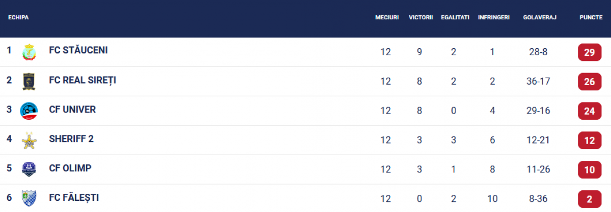 Clasamentul la zi
