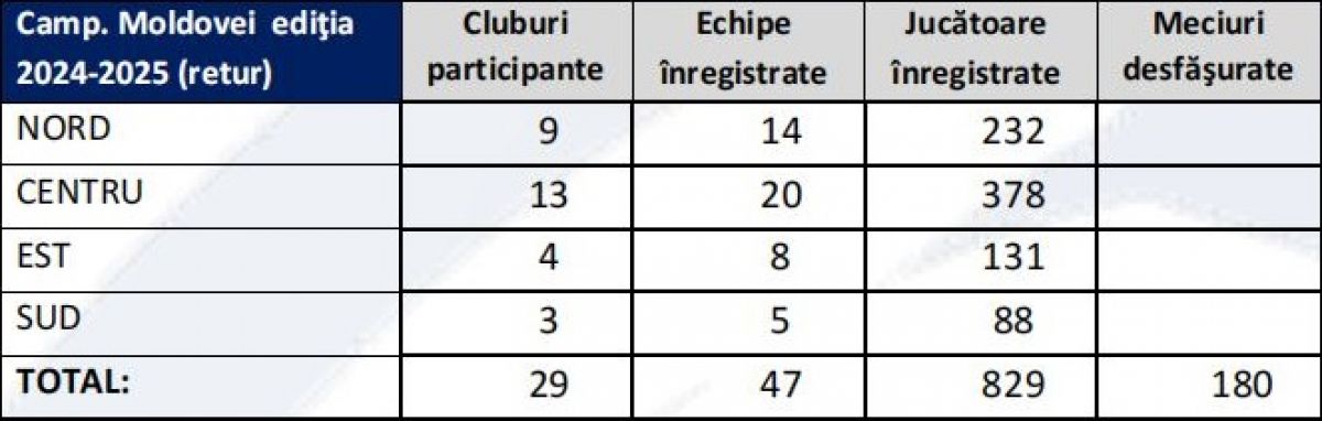 2025: 47 echipe și 829 jucătoare cu o creștere de 4.53%;