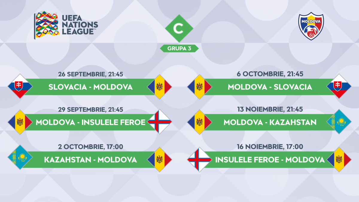 Liga Națiunilor. Programul meciurilor Naționalei Moldovei