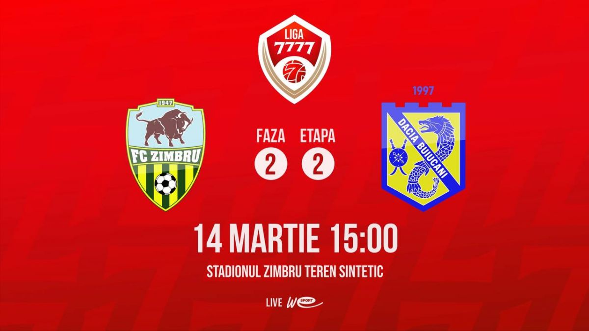 FC Zimbru și Dacia Buiucani se întâlnesc sâmbătă, 14 martie, de la ora 15:00, în primul meci al etapei a 2-a din faza a doua a campionatului Liga 7777. "Galben-verzii" ocupă locul 2 în clasamentul competiției înaintea acestei runde, în timp ce Dacia Buiucani se află pe poziția a 6-a. Partida va fi transmisă în direct pe platforma media ligatv.md, dar și la postul de televiziune WE SPORT TV.