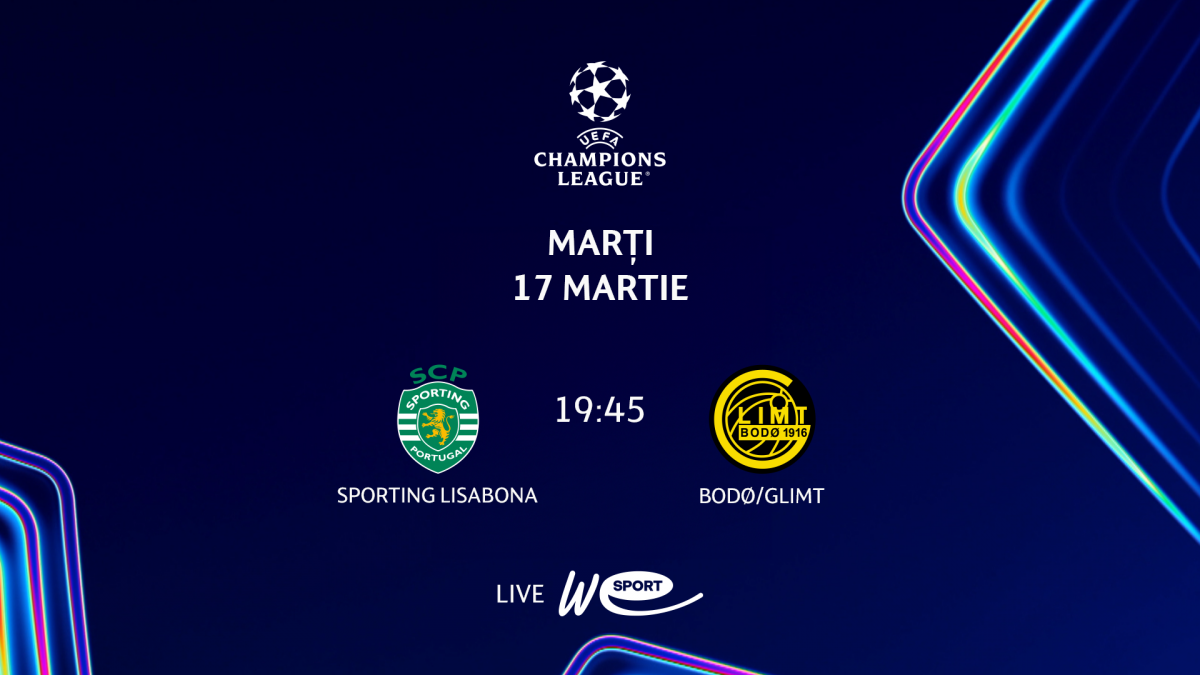 WE SPORT TV va transmite marți, 17 martie, partida dintre Sporting Lisabona (Portugalia) și BODO/GLIMT (Norvegia) din manșa retur a 1/8 de finală ale Ligii Campionilor UEFA. În primul duel scandinavii au învins fără emoții formația lusitană cu 3-0.