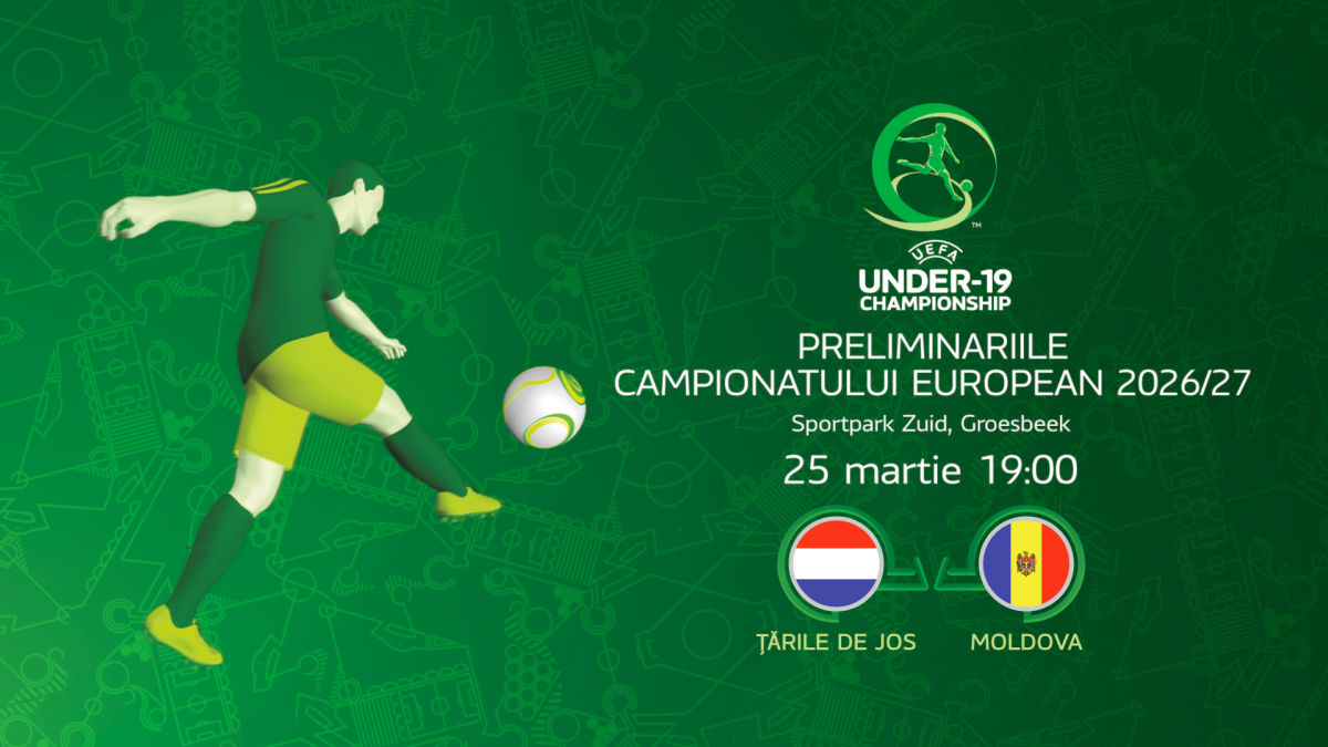 Selecționata Moldovei Under 19 va disputa astăzi, 25 martie, primul meci din cadrul preliminariilor Campionatului European, ediția 2026/2027, runda 1. Tricolorii mici vor întâlni reprezentativa Țărilor de Jos, gazda mini-turneului de calificare. Partida se va juca pe Sportpark Zuid din Groesbeek, cu începere de la ora 19:00.